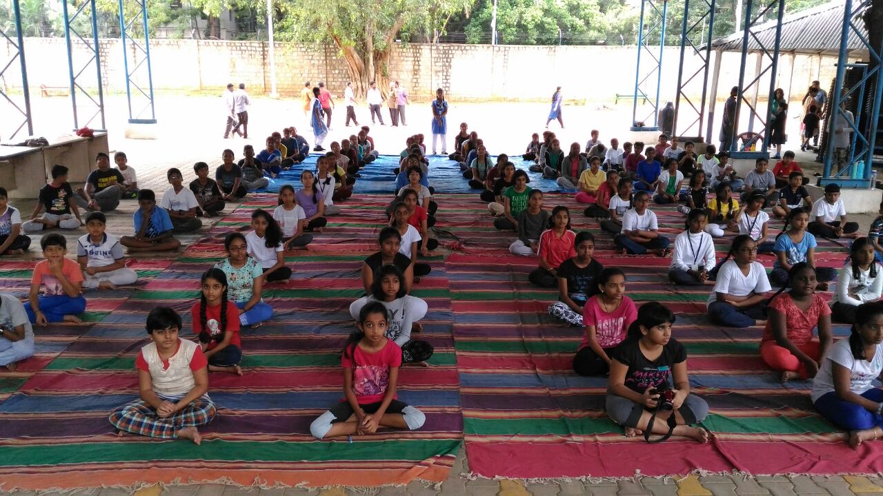 Yoga for the kids at Airforce School Hebbal on International Yoga Day 2018.